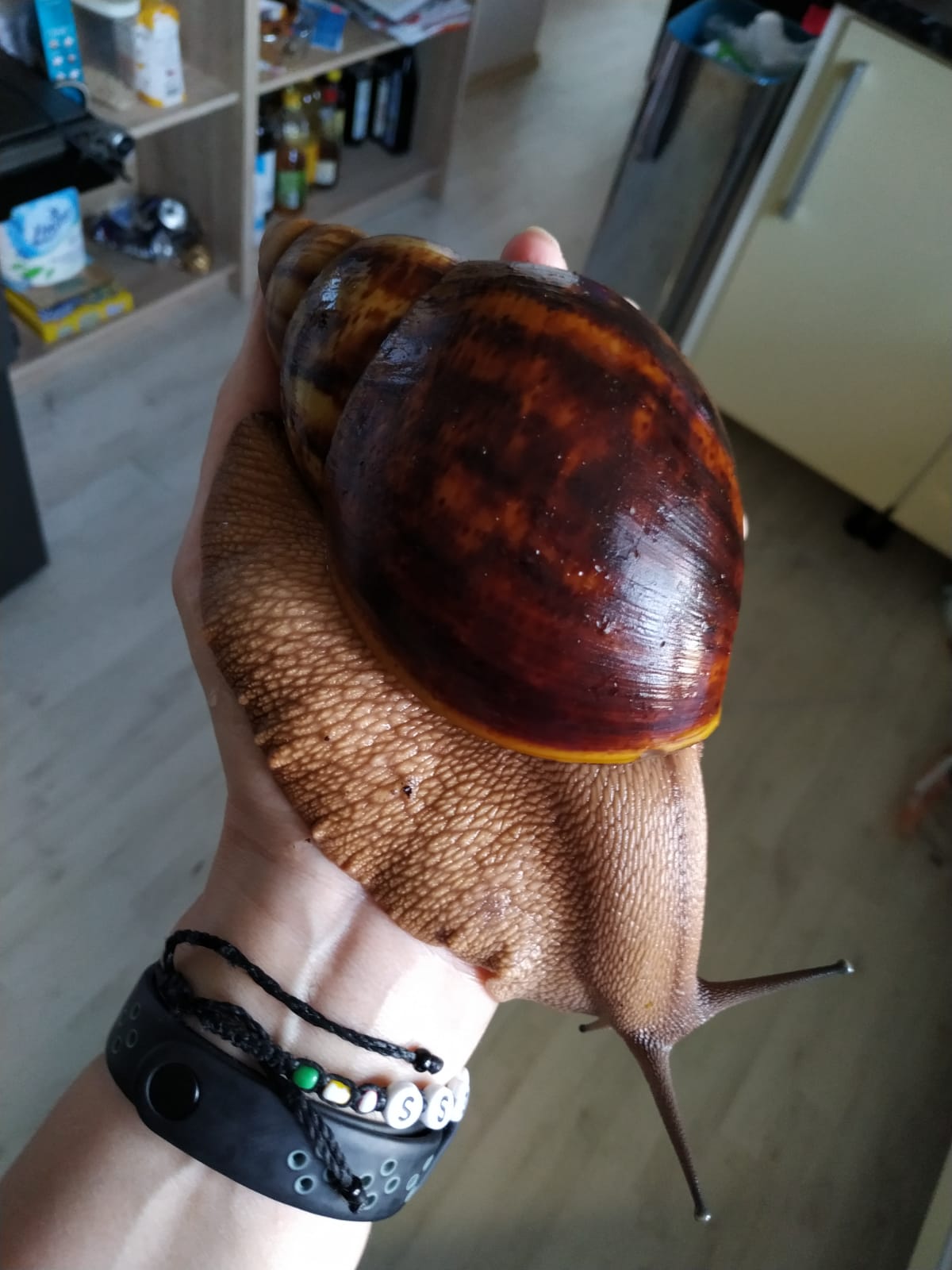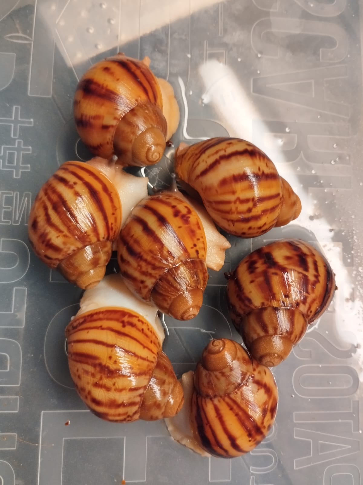 - Krásná forma druhu Archachatina Marginata s různě pruhovanou a různě tmavou až světlou ulitou. Noha je klasicky hnědá až tmavá. V Chovech poměrně častý a nenáročný poddruh. Rozpoznatelné znaky: bílý apex, žlutá až oranžová columella.